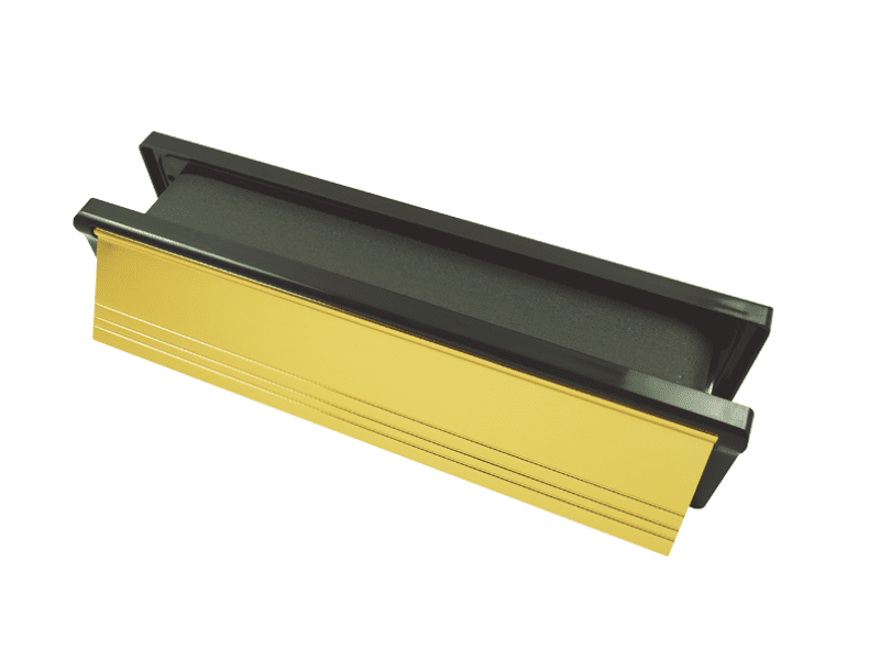 FireStop Defender Intumescent Letterplate 12″ – Polished Gold Finish (Black Frame)